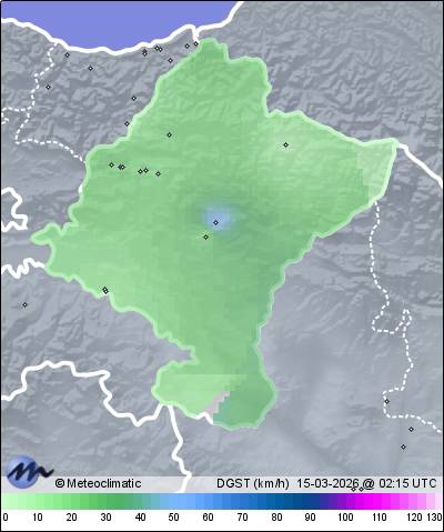 | Actualizado: 00:30 UTC | 9,5°C 88% | 9,5 °C / 97% | | 7,0°C / 88% | | 14 km/h N | | 27 km/h | | 1.015 hPa | | 0,2 mm |