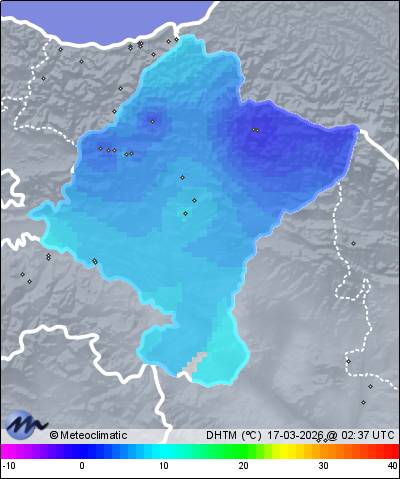 | Actualizado: 00:30 UTC | 2,5°C 95% | 3,6 °C / 95% | | 2,5°C / 95% | | Calma | | 4 km/h | | 1.021 hPa |