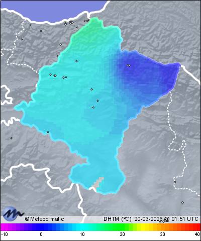 | Actualizado: 00:20 UTC | 6,6°C 84% | 7,3 °C / 84% |  | | 6,6°C / 83% | | Calma | | 2 km/h | | 1.015 hPa |
