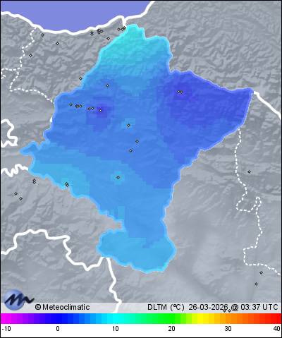 | Actualizado: 02:28 UTC | 3,9°C 88% | 4,3 °C / 88% | | 3,9°C / 83% | | 4 km/h WSW | | 23 km/h | | 1.025 hPa | | 0,1 mm |