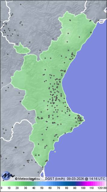 | Xàbia - Faro Cabo la Nao | 127 | 13,3 | 16,6 | 10,9 | 81 | 88 | 67 | 1.019 | 1.021 | 1.019 | 24 SSW | 30 | - | 133,3 | |