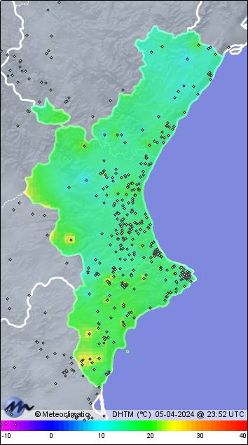 | 05-04-2024 | | | Máx. | Mín. | | | Temperatura | 21,9 | 13,1 | °C | | Humedad | 86 | 55 | % | | Viento | 19 | n/a | km/h | | Presión | 1.020 | 1.018 | hPa | | Precipitación | 0,0 | mm |