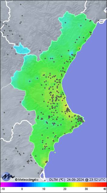 | 24-09-2024 | | | Máx. | Mín. | | | Temperatura | 29,5 | 18,7 | °C | | Humedad | 91 | 30 | % | | Viento | 30 | n/a | km/h | | Presión | 1.014 | 1.010 | hPa | | Precipitación | 0,0 | mm |