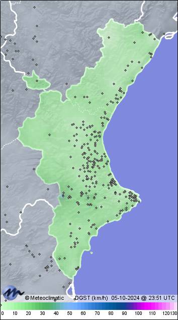 | 05-10-2024 | | | Máx. | Mín. | | | Temperatura | 29,1 | 16,3 | °C | | Humedad | 88 | 61 | % | | Viento | 23 | n/a | km/h | | Presión | 1.014 | 1.009 | hPa | | Precipitación | 0,0 | mm |
