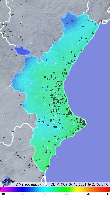 | 07-12-2024 | | | Máx. | Mín. | | | Temperatura | 21,6 | 15,3 | °C | | Humedad | 71 | 34 | % | | Viento | 52 | n/a | km/h | | Presión | 1.024 | 1.017 | hPa | | Precipitación | 0,0 | mm |
