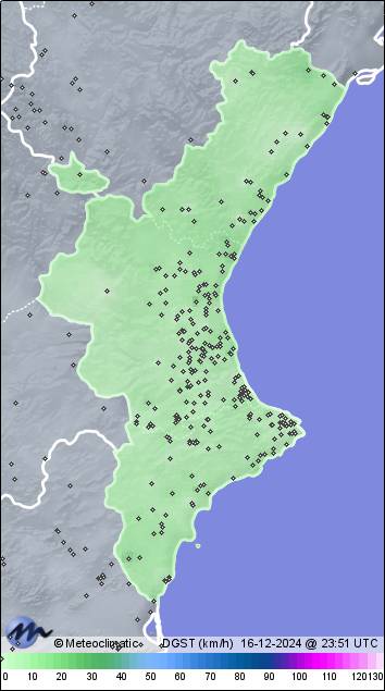 | 16-12-2024 | | | Máx. | Mín. | | | Temperatura | 16,5 | 6,0 | °C | | Humedad | 83 | 48 | % | | Viento | 13 | n/a | km/h | | Presión | 1.040 | 1.036 | hPa | | Precipitación | 0,0 | mm |