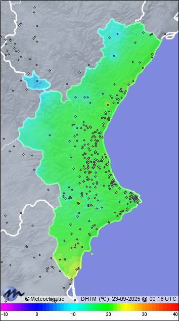 | 22-09-2025 | | | Máx. | Mín. | | | Temperatura | 25,6 | 16,3 | °C | | Humedad | 87 | 23 | % | | Viento | 20 | n/a | km/h | | Presión | 1.017 | 1.012 | hPa | | Precipitación | 0,0 | mm |