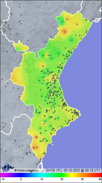 04-10-2025 | | Máx. | Mín. | | Temperatura | 29,6 | 15,1 | °C | Humedad | 95 | 25 | % | Viento | 37 | n/a | km/h | Presión | 1.018 | 1.013 | hPa | Precipitación | 0,0 | mm |