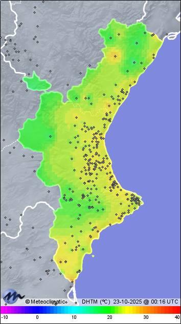 22-10-2025 | | Máx. | Mín. | | Temperatura | 23,6 | 18,3 | °C | Humedad | 85 | 54 | % | Viento | 63 | n/a | km/h | Presión | 1.016 | 1.013 | hPa | Precipitación | 0,0 | mm |