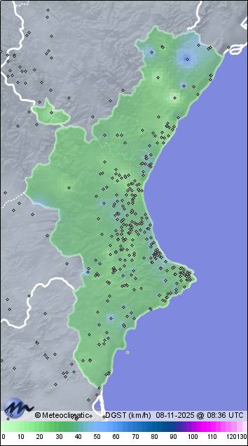 | Benifallim - Freginal | 733 | 11,9 | 11,9 | 10,6 | 81 | 85 | 81 | 1.011 | 1.013 | 1.011 | 15 WNW | 37 | 0,4 | 503,8 | |
