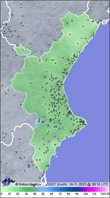 | Xàbia - Alt la Granadella | 150 | 17,7 | 18,4 | 16,7 | 70 | 90 | 70 | 1.015 | 1.016 | 1.013 | 7 WNW | 46 | - | 352,8 | |