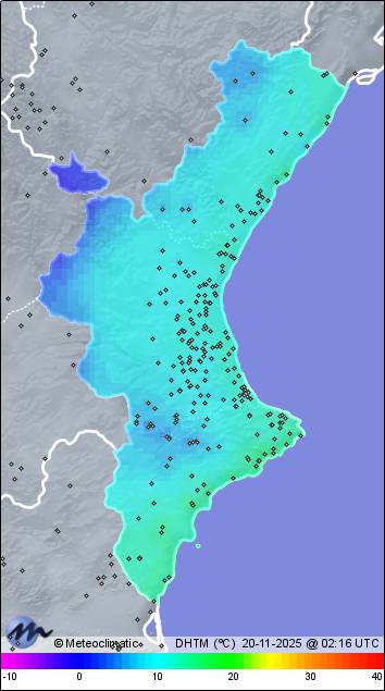 | Dénia - Madrigueres | 13 | 13,4 | 14,1 | 13,2 | 55 | 61 | 54 | 1.014 | 1.015 | 1.014 | 6 NNW | 16 | - | 493,6 | |
