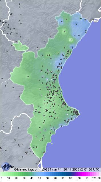 | Dénia - Jesús Pobre | 120 | 11,7 | 12,3 | 11,6 | 55 | 56 | 54 | 1.020 | 1.021 | 1.020 | 8 WNW | 29 | - | 742,4 | |