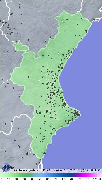| Els Poblets | 20 | 12,6 | 13,1 | 11,9 | 92 | 95 | 92 | 1.025 | 1.025 | 1.024 | 3 NNW | 15 | 3,4 | 639,6 | |