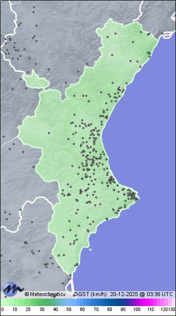 | Dénia - Jesús Pobre | 120 | 12,2 | 12,6 | 12,2 | 93 | 94 | 92 | 1.019 | 1.021 | 1.019 | 3 NNW | 11 | - | 817,2 | |