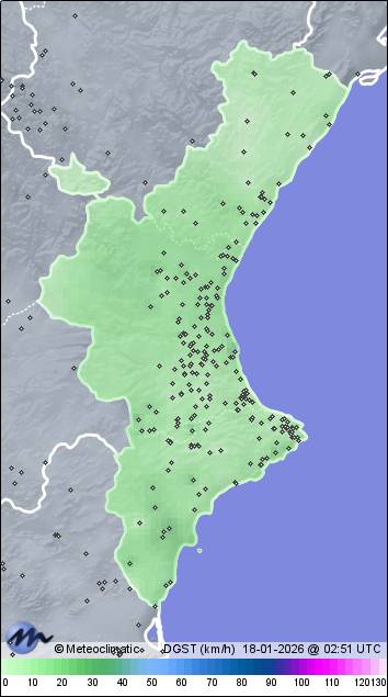 | Xàbia - Alt la Granadella | 150 | 9,4 | 10,8 | 9,1 | 79 | 81 | 71 | 1.008 | 1.009 | 1.008 | 9 NNW | 13 | - | 17,3 | |