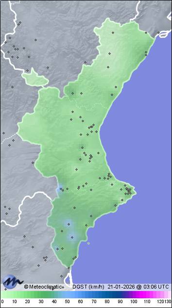 | Gata de Gorgos | 79 | 9,7 | 9,8 | 9,5 | 95 | 96 | 95 | 1.011 | 1.011 | 1.010 | 16 ESE | 37 | 8,4 | 142,4 | |