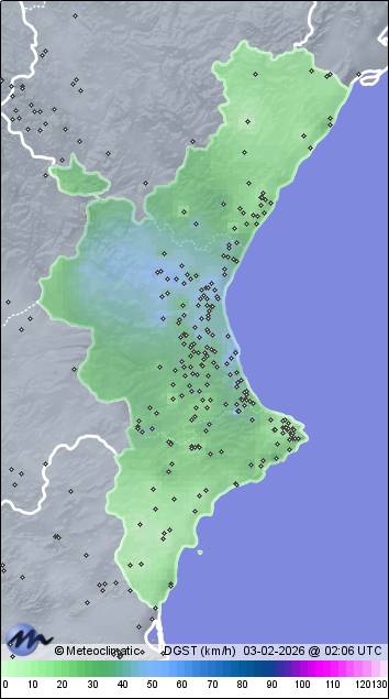 | Agres - Torreta Alta | 763 | 6,7 | 15,2 | 6,4 | 69 | 85 | 45 | 1.002 | 1.010 | 997 | 29 WSW | 103 | - | 78,2 | |