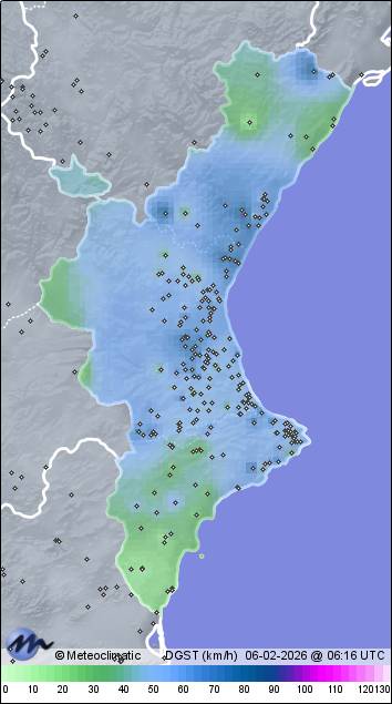 | Benifallim - Freginal | 733 | 9,7 | 11,0 | 9,7 | 72 | 72 | 67 | 1.000 | 1.000 | 999 | 13 WNW | 42 | - | 82,0 | |