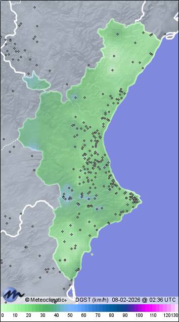 | Agres - Torreta Alta | 763 | 7,8 | 9,1 | 7,8 | 72 | 72 | 67 | 1.005 | 1.006 | 1.005 | 34 WSW | 64 | - | 82,0 | |