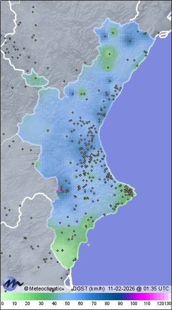 | Agres - Torreta Alta | 763 | 15,8 | 15,9 | 15,6 | 73 | 74 | 72 | 1.010 | 1.010 | 1.009 | 47 WSW | 85 | - | 82,2 | |
