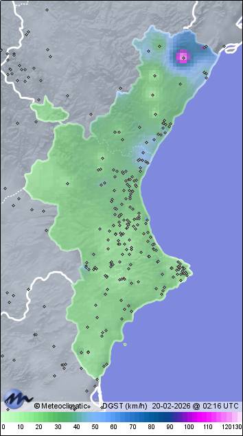 | Dénia - Santa Llúcia | 60 | 13,1 | 13,4 | 13,1 | 46 | 49 | 46 | 1.026 | 1.026 | 1.025 | 11 WNW | 27 | - | 97,4 | |
