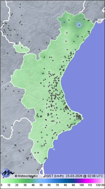 | Benifallim - Freginal | 733 | 8,1 | 8,2 | 7,9 | 65 | 68 | 63 | 1.010 | 1.011 | 1.010 | 3 SSW | 6 | - | 203,4 | |