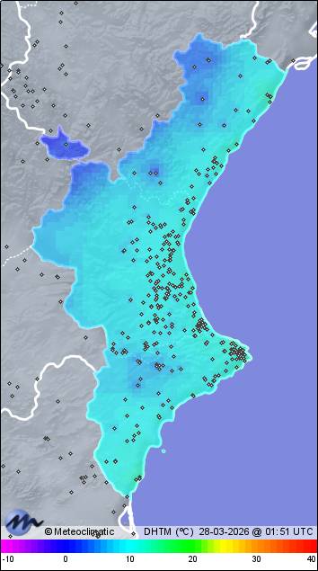 | Dénia - Madrigueres | 13 | 13,1 | 13,2 | 13,0 | 71 | 72 | 70 | 1.019 | 1.019 | 1.018 | 11 SSW | 31 | - | 150,2 | |