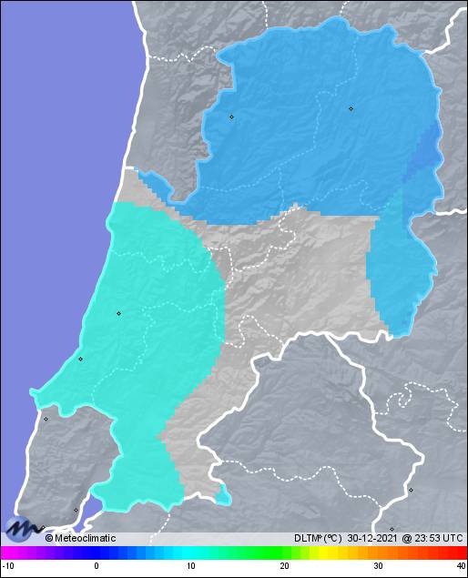 | 30-12-2021 | | | Máx. | Mín. | | | Temperatura | 16,3 | 10,9 | °C | | Humedad | 96 | 80 | % | | Viento | 40 | n/a | km/h | | Presión | 1.023 | 1.020 | hPa | | Precipitación | 0,0 | mm |