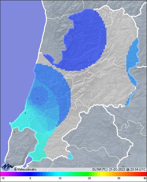 | 21-02-2022 | | | Máx. | Mín. | | | Temperatura | 15,2 | 10,0 | °C | | Humedad | 93 | 75 | % | | Viento | 48 | n/a | km/h | | Presión | 1.030 | 1.027 | hPa | | Precipitación | 0,0 | mm |