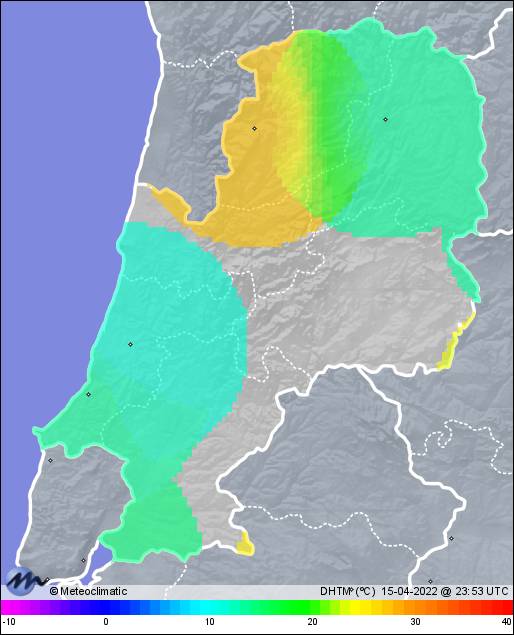 | 15-04-2022 | | | Máx. | Mín. | | | Temperatura | 28,3 | 8,2 | °C | | Humedad | 97 | 32 | % | | Viento | 35 | n/a | km/h | | Presión | 1.024 | 1.021 | hPa | | Precipitación | 0,0 | mm |
