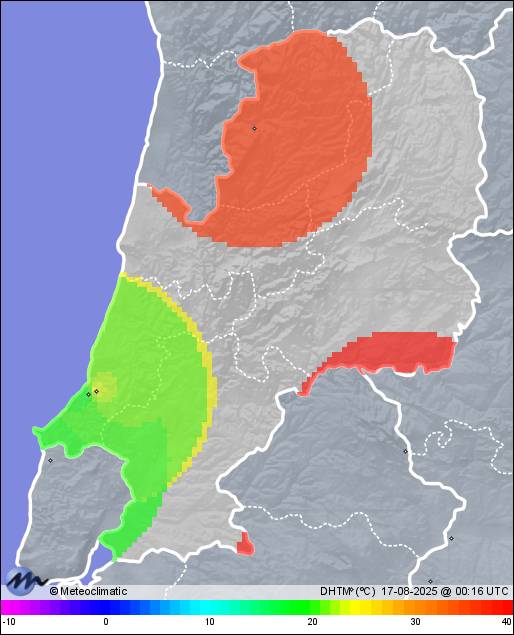 | 16-08-2025 | | | Máx. | Mín. | | | Temperatura | 21,7 | 17,3 | °C | | Humedad | 94 | 83 | % | | Viento | 40 | n/a | km/h | | Presión | 1.022 | 1.019 | hPa | | Precipitación | 0,0 | mm |