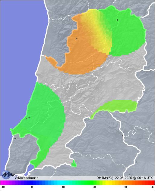 | 21-08-2025 | | | Máx. | Mín. | | | Temperatura | 22,6 | 16,9 | °C | | Humedad | 96 | 80 | % | | Viento | 32 | n/a | km/h | | Presión | 1.019 | 1.017 | hPa | | Precipitación | 0,0 | mm |