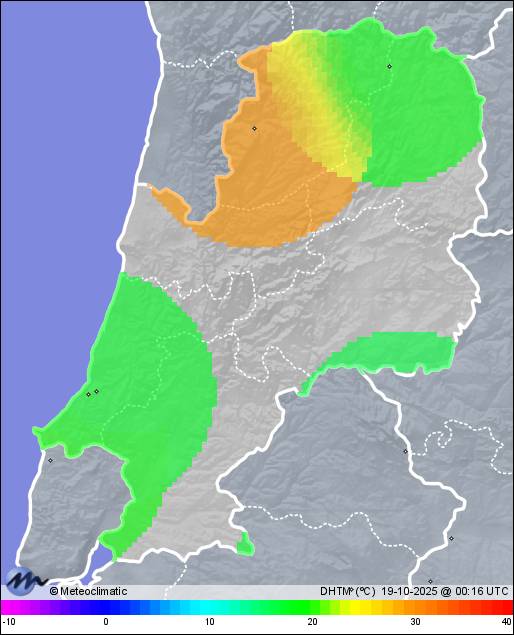 Actualizado: 22:13 UTC | 19,3°C 56% | 25,1 °C / 81% | 12,9°C / 40% | | Calma | 20 km/h |