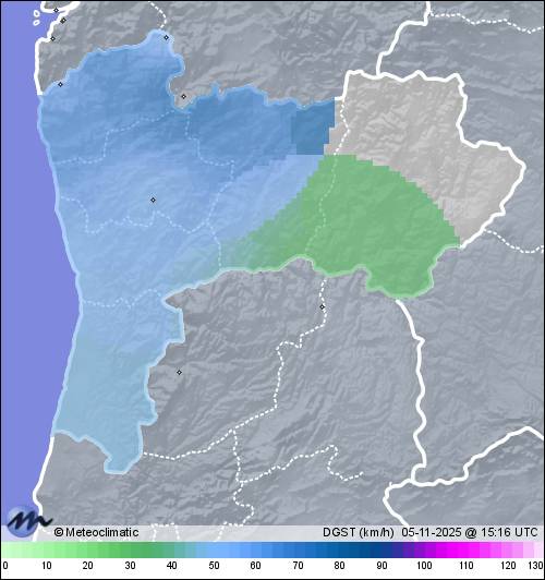 | Actualizado: 13:03 UTC | 15,6°C 77% | 22,9 °C / 97% | | 13,5°C / 41% | | 8 km/h S | | 52 km/h | | 1.002 hPa | | 51,8 mm |