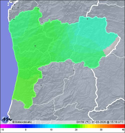 | Actualizado: 13:31 UTC | 12,9°C 78% | 13,3 °C / 93% |  | | 4,9°C / 72% | | 10 km/h WNW | | 18 km/h | | 1.021 hPa |