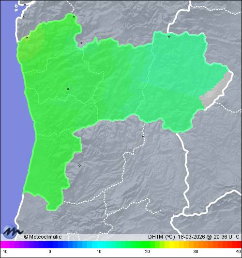 | Actualizado: 18:32 UTC | 17,6°C 52% | 20,0 °C / 78% | | 10,0°C / 45% | | 3 km/h ENE | | 22 km/h | | 1.005 hPa |
