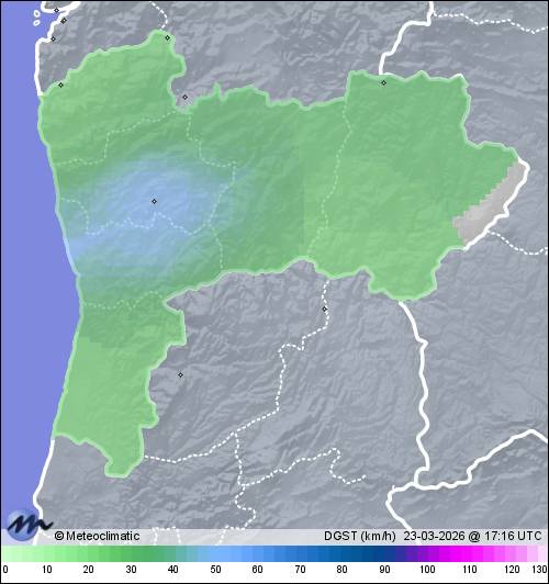 | Actualizado: 15:59 UTC | 15,3°C 48% | 16,3 °C / 86% | | 5,9°C / 45% | | 8 km/h NE | | 24 km/h |