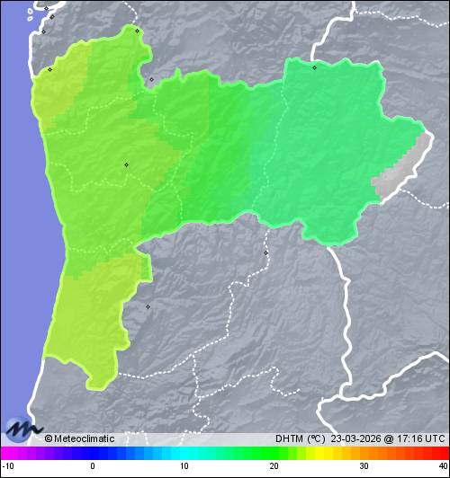 | Actualizado: 15:47 UTC | 21,1°C 41% | 21,3 °C / 87% | | 6,8°C / 40% | | 9 km/h N | | 24 km/h | | 1.015 hPa |