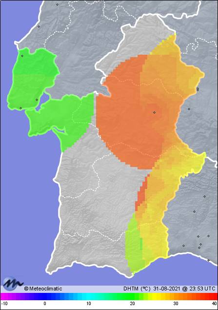 | 31-08-2021 | | | Máx. | Mín. | | | Temperatura | 34,0 | 16,1 | °C | | Humedad | 86 | 28 | % | | Viento | 22 | n/a | km/h | | Presión | 1.016 | 1.011 | hPa | | Precipitación | 0,0 | mm |