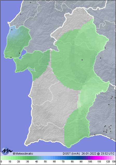 | 26-01-2022 | | | Máx. | Mín. | | | Temperatura | 15,9 | 7,3 | °C | | Humedad | 85 | 55 | % | | Viento | 48 | n/a | km/h | | Presión | 1.028 | 1.024 | hPa | | Precipitación | 0,0 | mm |