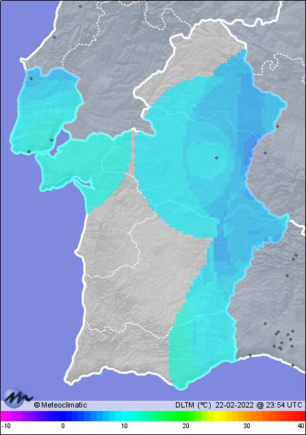 | 22-02-2022 | | | Máx. | Mín. | | | Temperatura | 24,2 | 7,4 | °C | | Humedad | 98 | 23 | % | | Viento | 39 | n/a | km/h | | Presión | 1.028 | 1.023 | hPa | | Precipitación | 0,2 | mm |