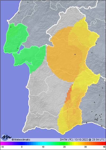 | 13-10-2022 | | | Máx. | Mín. | | | Temperatura | 21,3 | 16,7 | °C | | Humedad | 96 | 76 | % | | Viento | 35 | n/a | km/h | | Presión | 1.026 | 1.023 | hPa | | Precipitación | 0,0 | mm |