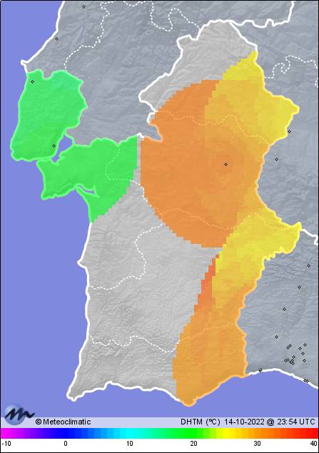| 14-10-2022 | | | Máx. | Mín. | | | Temperatura | 31,8 | 15,0 | °C | | Humedad | 83 | 31 | % | | Viento | 9 | n/a | km/h | | Presión | 1.025 | 1.018 | hPa | | Precipitación | 0,0 | mm |
