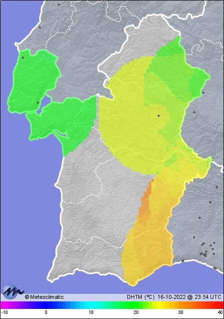 | 16-10-2022 | | | Máx. | Mín. | | | Temperatura | 22,0 | 17,3 | °C | | Humedad | 95 | 76 | % | | Viento | 29 | n/a | km/h | | Presión | 1.016 | 1.012 | hPa | | Precipitación | 0,4 | mm |