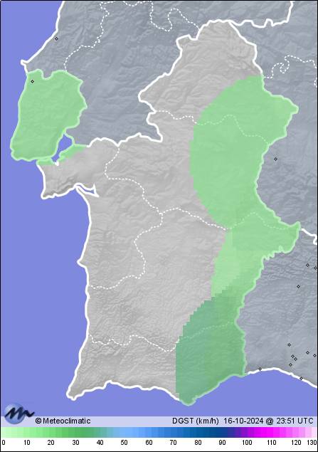 | 16-10-2024 | | | Máx. | Mín. | | | Temperatura | 21,7 | 13,6 | °C | | Humedad | 98 | 85 | % | | Viento | 52 | n/a | km/h | | Presión | 1.014 | 1.000 | hPa | | Precipitación | 1,6 | mm |