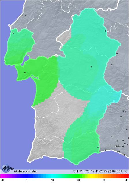 | Llueve | | Actualizado: 07:28 UTC | 10,2°C 96% | 10,9 °C / 97% | | 9,9°C / 95% | | 3 km/h ESE | | 17 km/h | | 1.012 hPa | | 42,2 mm |