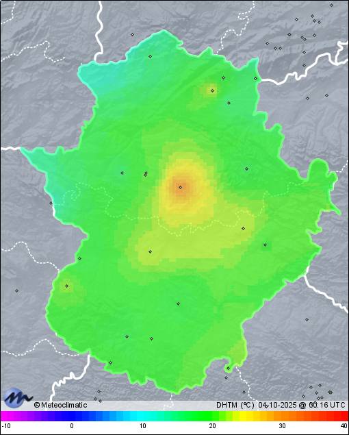 | 03-10-2025 | | | Máx. | Mín. | | | Temperatura | 31,6 | 10,2 | °C | | Humedad | 96 | 26 | % | | Viento | 33 | n/a | km/h | | Presión | 1.022 | 1.019 | hPa | | Precipitación | 0,0 | mm |